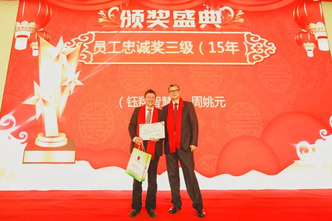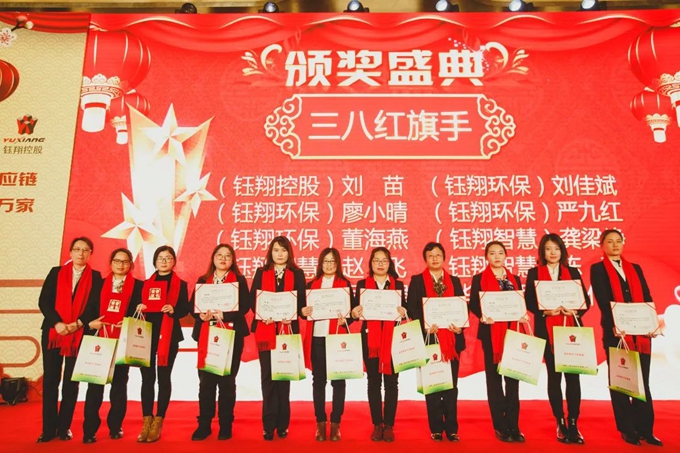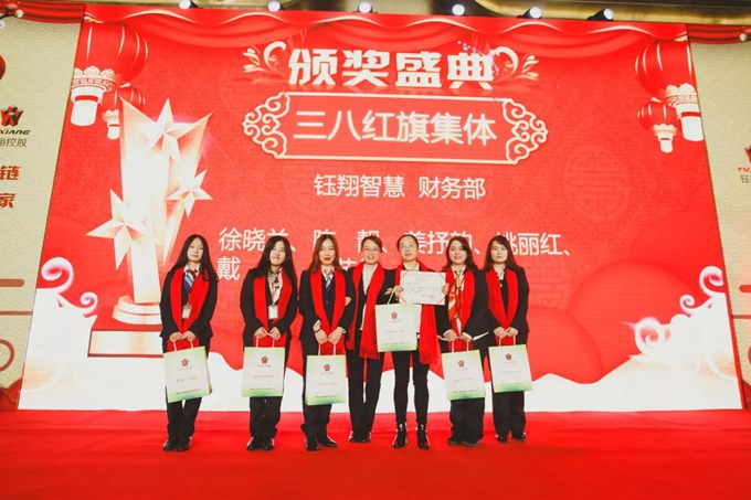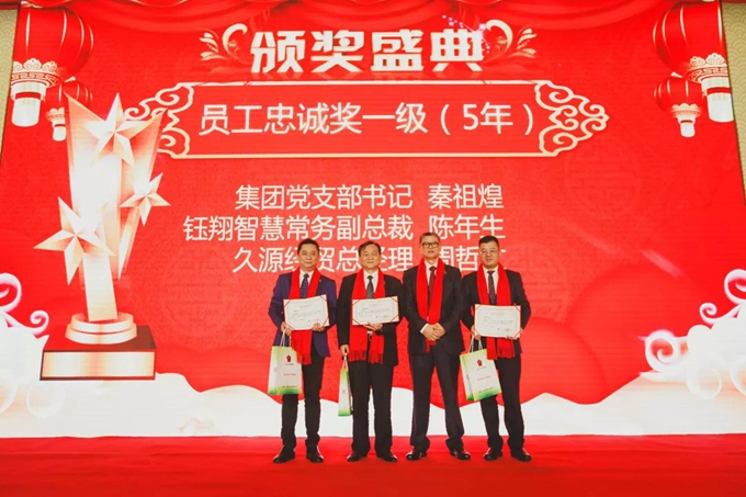 集團黨支部書記秦祖煌宣讀了集團表彰文件,對集團2018年度優秀團隊、優秀管理者、優秀員工、青年崗位能手、三八紅旗手、三八紅旗集體、員工忠誠獎、集團優秀通訊員、營銷冠亞季軍及董事長特別獎共計186人次進行隆重表彰和現場頒獎。每一次頒獎,都伴隨著如潮的掌聲和歡呼聲,受表彰人員走上舞臺,接受一份沉甸甸的榮譽和所有鈺翔人的敬意。